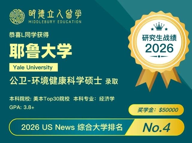 2026明德立人美研 | 耶鲁公卫Offer!新年第一杯敬自己,敬梦想成真!
