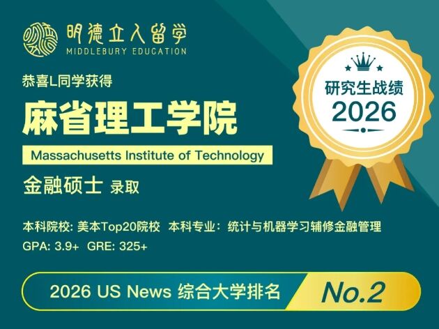 2026明德立人美研 | MIT金融硕士录取!!两年前来明德,就冲着MIT!靠谱!