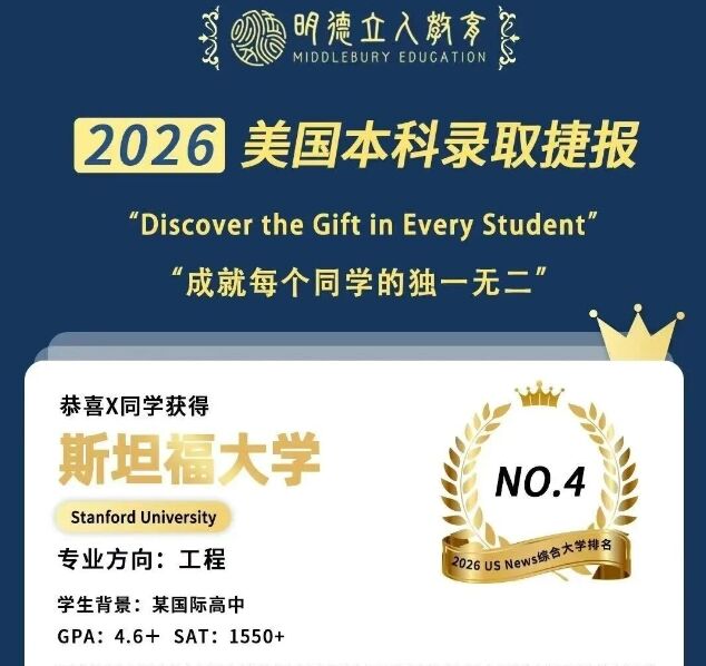 斯坦福大学工程录取!26fall明德美本理工科录取100+枚!硬骨头都拿下了!