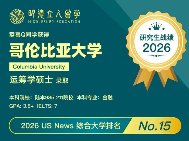 哥伦比亚大学「运筹学」录取!陆本学子逆袭,所有努力都终有回响!| 2026明德立人美国研究生录取
