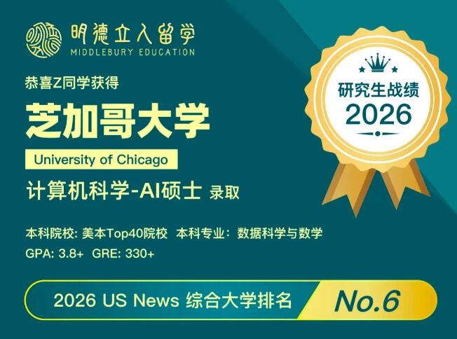芝加哥大学CS in AI!26Fall新开方向!1年STEM,毕业起薪104万!!| 2026明德立人美国研究生