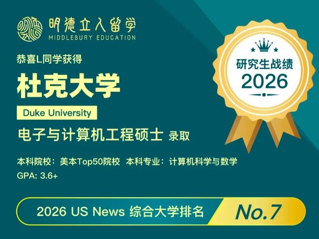 杜克大学「电子与计算机工程」录取!GPA3.6+,第8个offer已到手!| 2026明德立人美国研究生