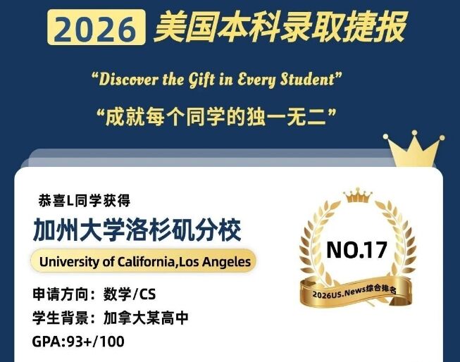 2026明德立人美本 | UCLA+7!WashU+1、北卡+2、UCSD+20、UCSC+4!近200万奖学金,RD大丰收!