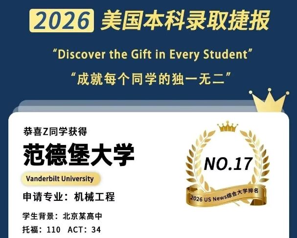 2026明德立人美本 | 范德堡机械工程+1!埃默里+3、南加大+3、纽大+6!