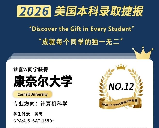 2026明德立人美本 | Ivy Day放榜:藤校康奈尔+3,CS、食品科学录取!伯克利+10!埃默里+1、纽大CS+1!