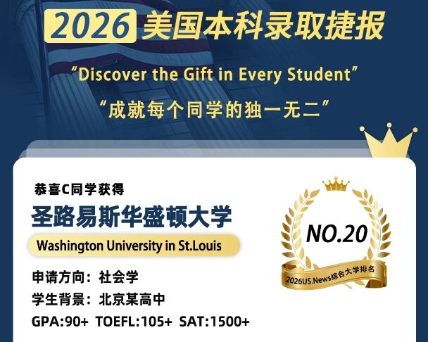 2026明德立人美本 | ED2放榜!圣路易斯华盛顿大学录取+3!恭喜三位北京学子!