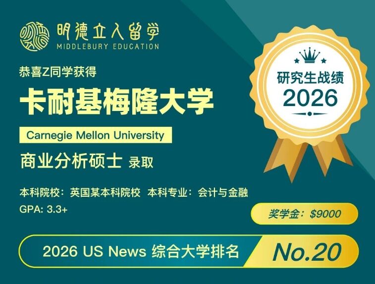2026明德立人美研 | 卡梅offer丰收!BA、BIDA、信息技术、软件工程、MIIS、AI-ECE 带奖6.2万!