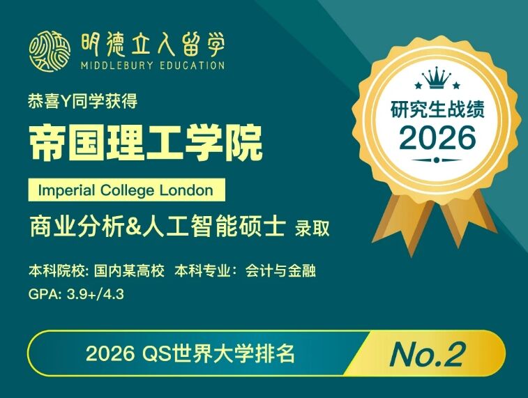 2026明德立人战绩 | QS第2!帝国理工学院+2!BA&AI、气候变化,管理与金融!