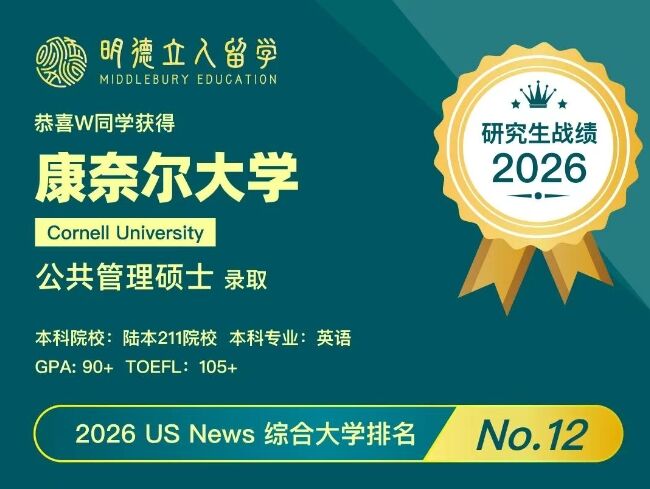 康奈尔大学2枚!公共管理、计算机科学录取!| 2026明德立人美国研究生录取