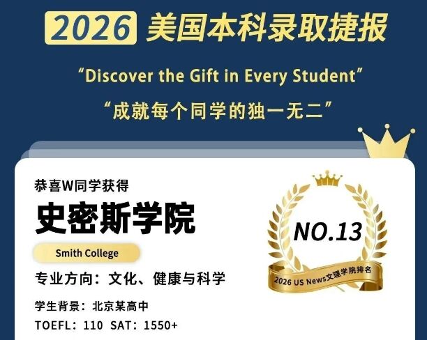 2026明德立人美本 | 一人拿3枚文理学院:韦尔斯利、史密斯、布林莫尔,98W奖学金!天选!