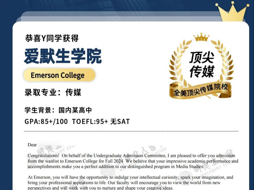 明德立人战绩|范德堡、埃默里、巴纳德转学offer!还有普高、托福95+转正「顶尖传媒」爱默生学院!