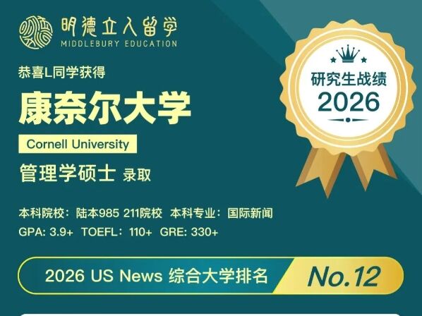 2026明德立人美研战绩 | 康奈尔 BDS+2!在纽约市中心,DS+生统完美结合!