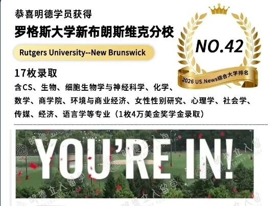 2026明德立人本科 | 28枚!罗格斯+24、UCL+2、多大+1!收割CS、生物、工程,全面开花!