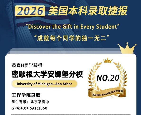 2026明德立人美本战绩 | 密歇根安娜堡+2!「王牌工院」录取,恭喜北京学子!