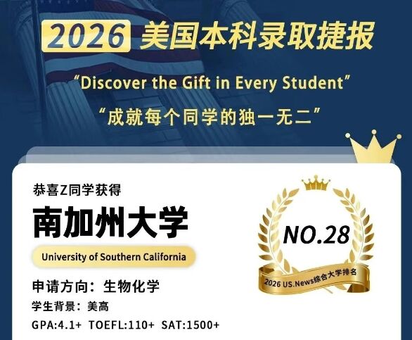 2026明德立人美本 | 南加大录取两枚!恭喜深圳学子!