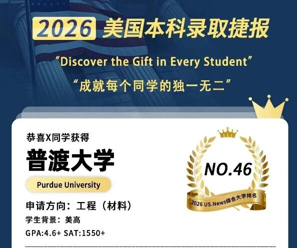 2026明德立人美本战绩 | 普渡大学AI、工程两枚录取!大陆学生7.3%录取率,快赶上藤校了!