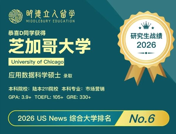 2026明德立人美研录取 | 芝大ADS首轮放榜!陆本211市场跨申BA/DS成功,这offer下的也太快了!