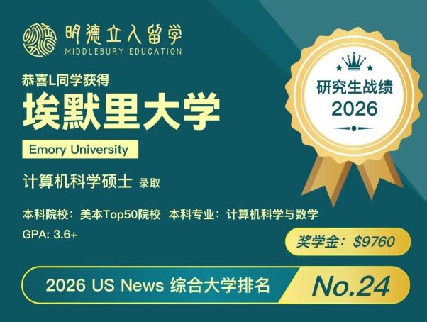 2026明德立人美研录取 | 埃默里大学CS,带奖6.8万!惊喜来得再多一些!