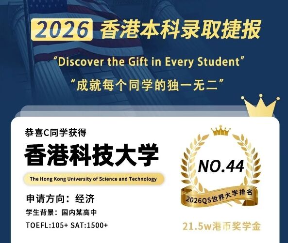 明德立人2026本科战绩 | 带奖Offer+1!香港科技大学,21.5W港币!