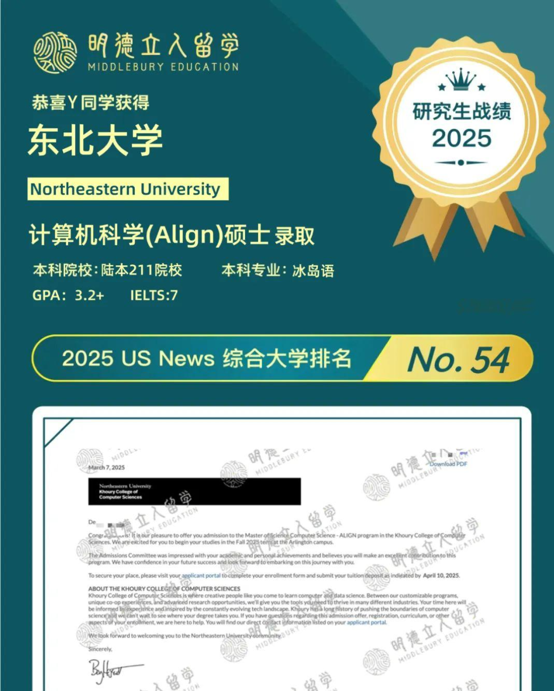 热烈祝贺明德学子Y同学,GPA3.2+,成功转码——