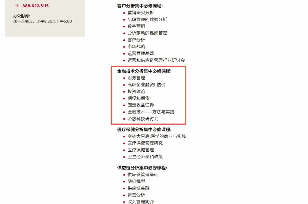 六个方向分别有不同的必修课程,两位同学均选择了金融科技方向,必修课如下: