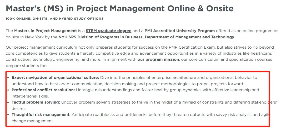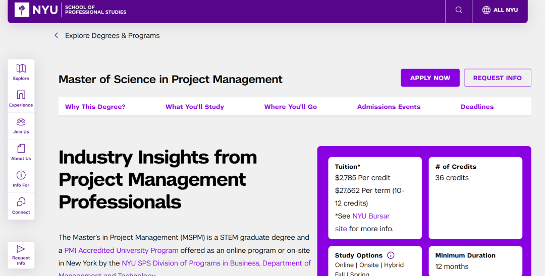 项目管理硕士属于STEM项目,由纽约大学SPS商业计划部、管理和技术系提供在线或现场课程。