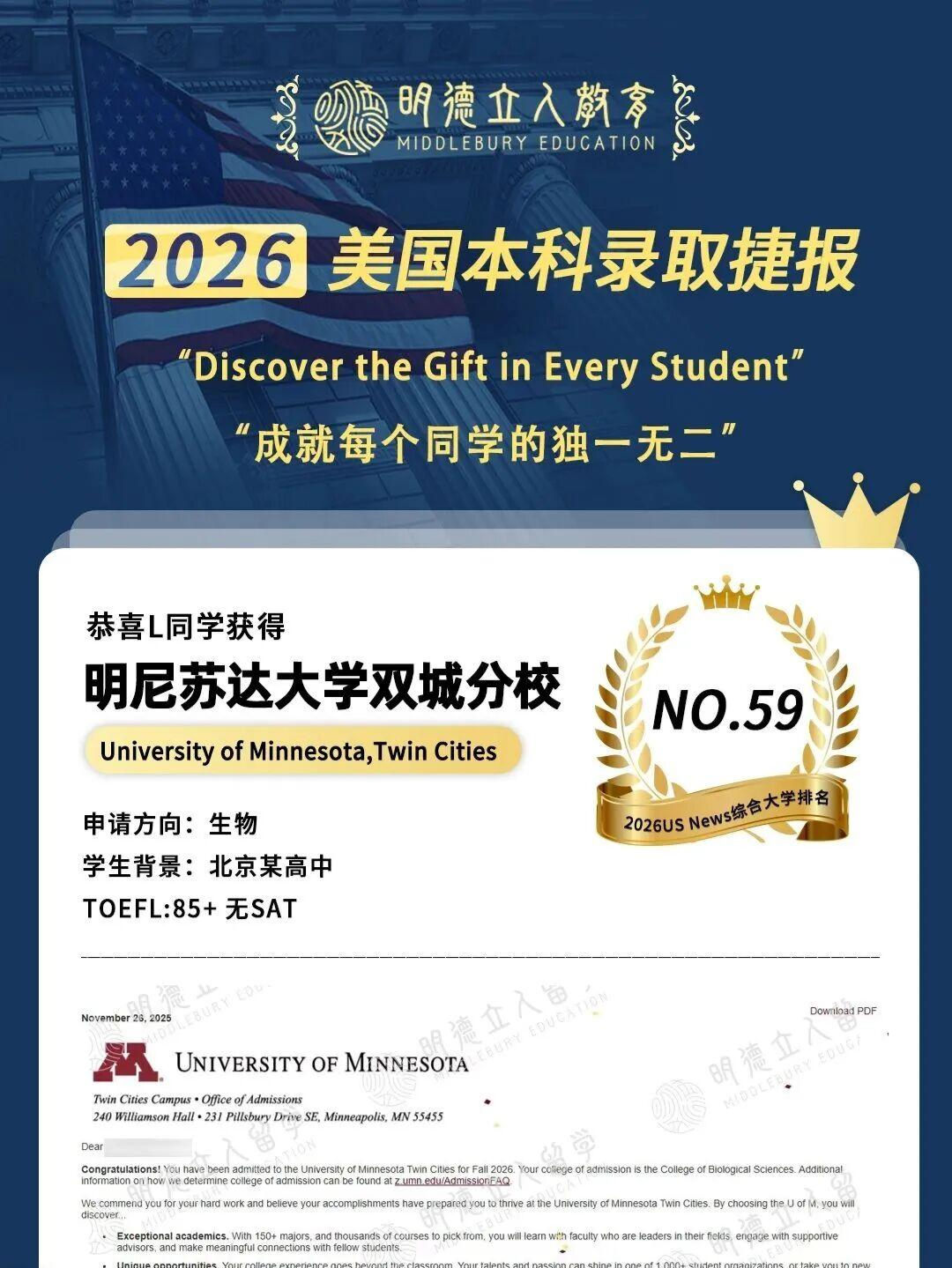 恭喜明德立人学员L同学