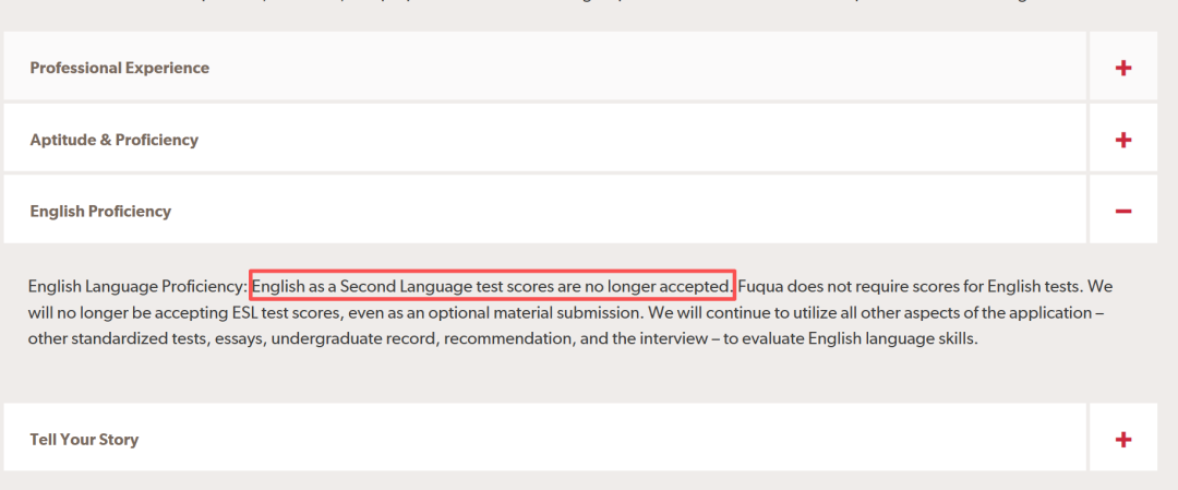 需要注意,杜克大学MQM项目不接受托福或雅思考试成绩,作为可选提交材料,将根据其他方面(其他标准化考试、论文、本科成绩、推荐信和面试)来衡量申请者的英语能力。