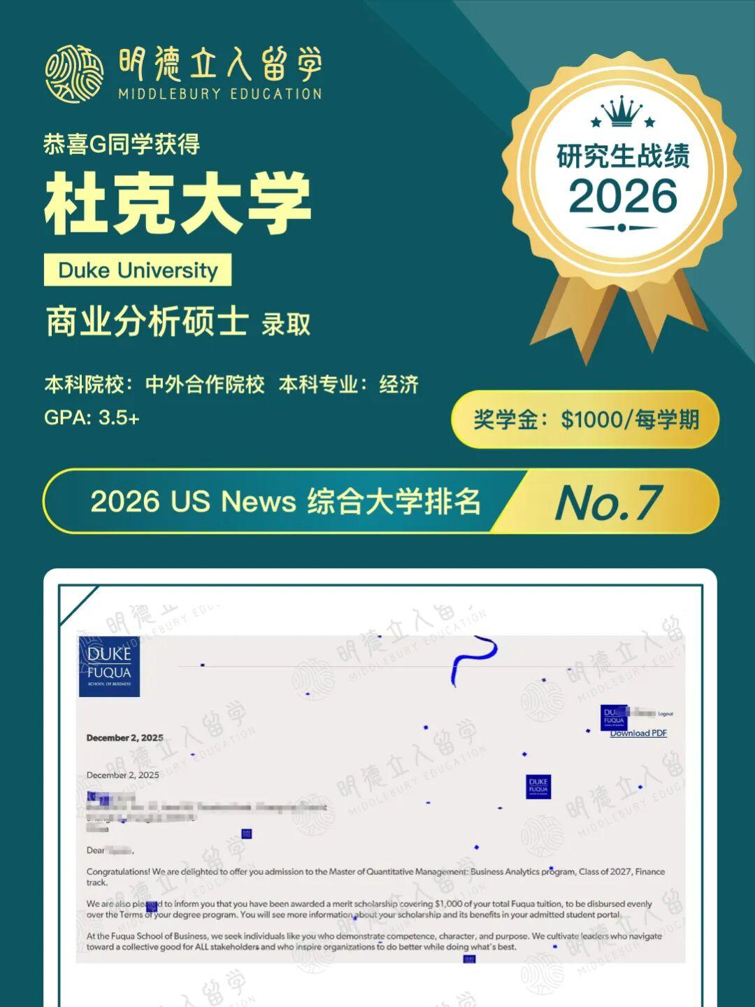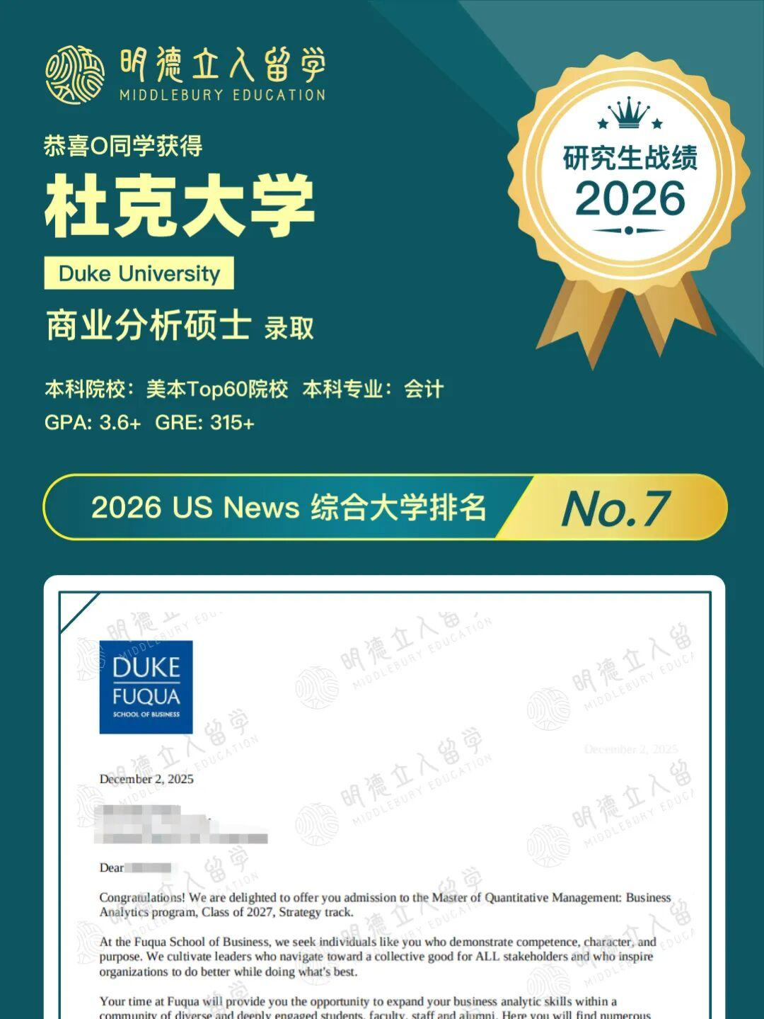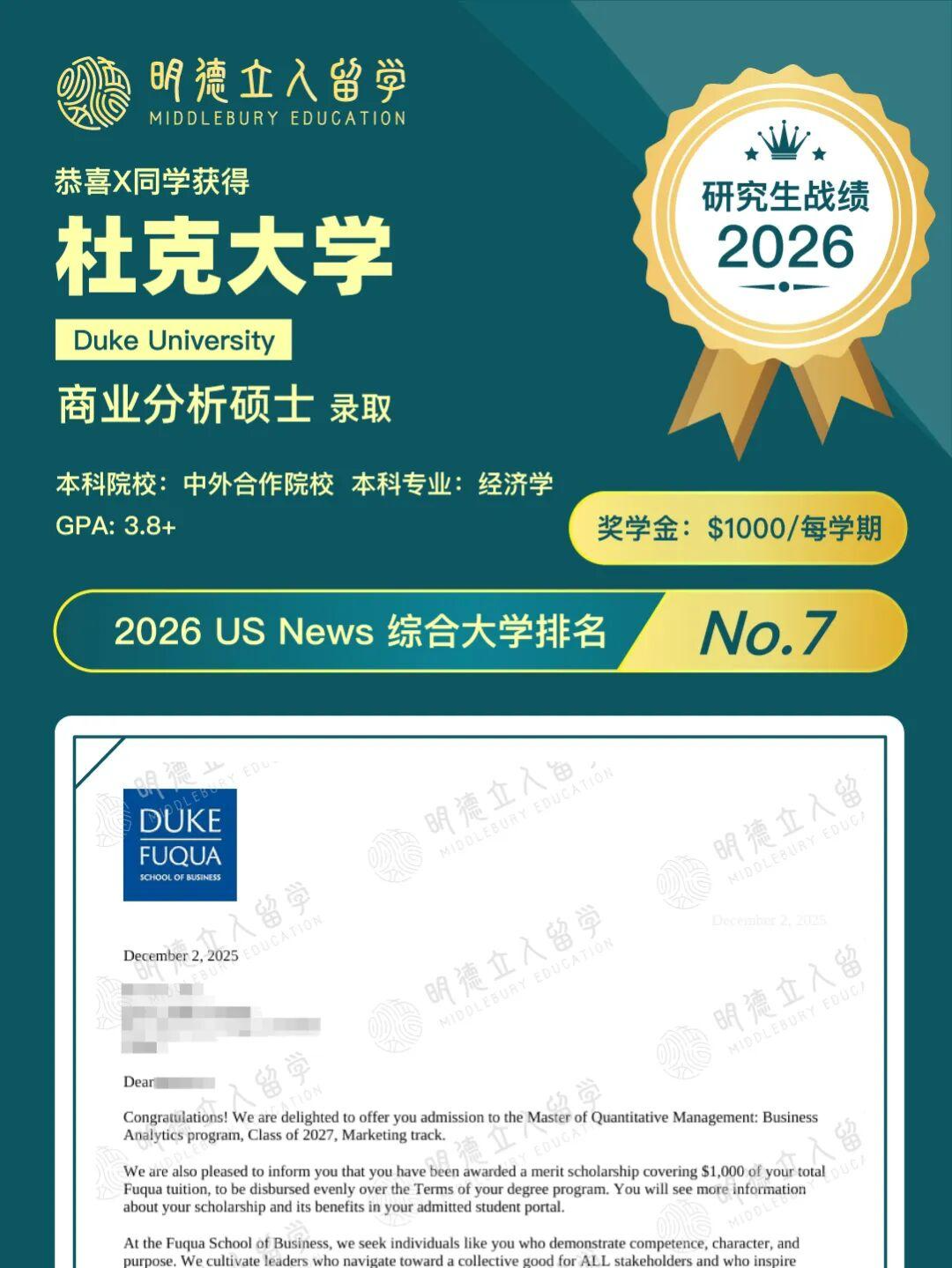 大家快来沾喜气了,杜克大学的3枚offer来啦~