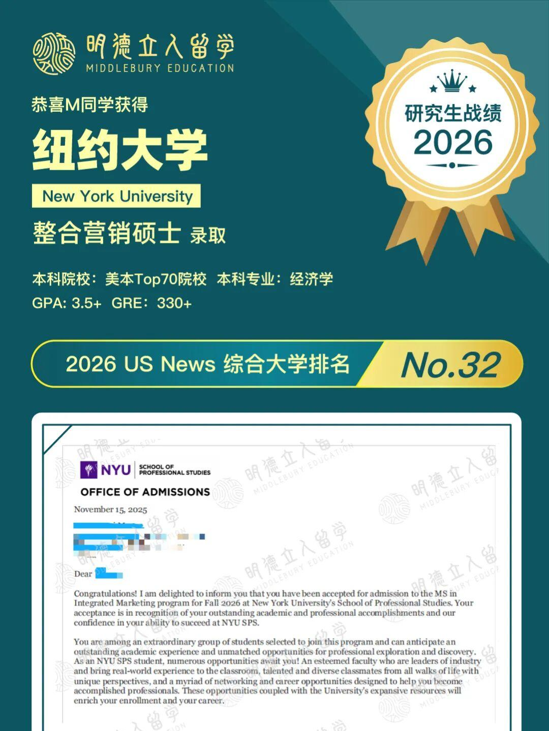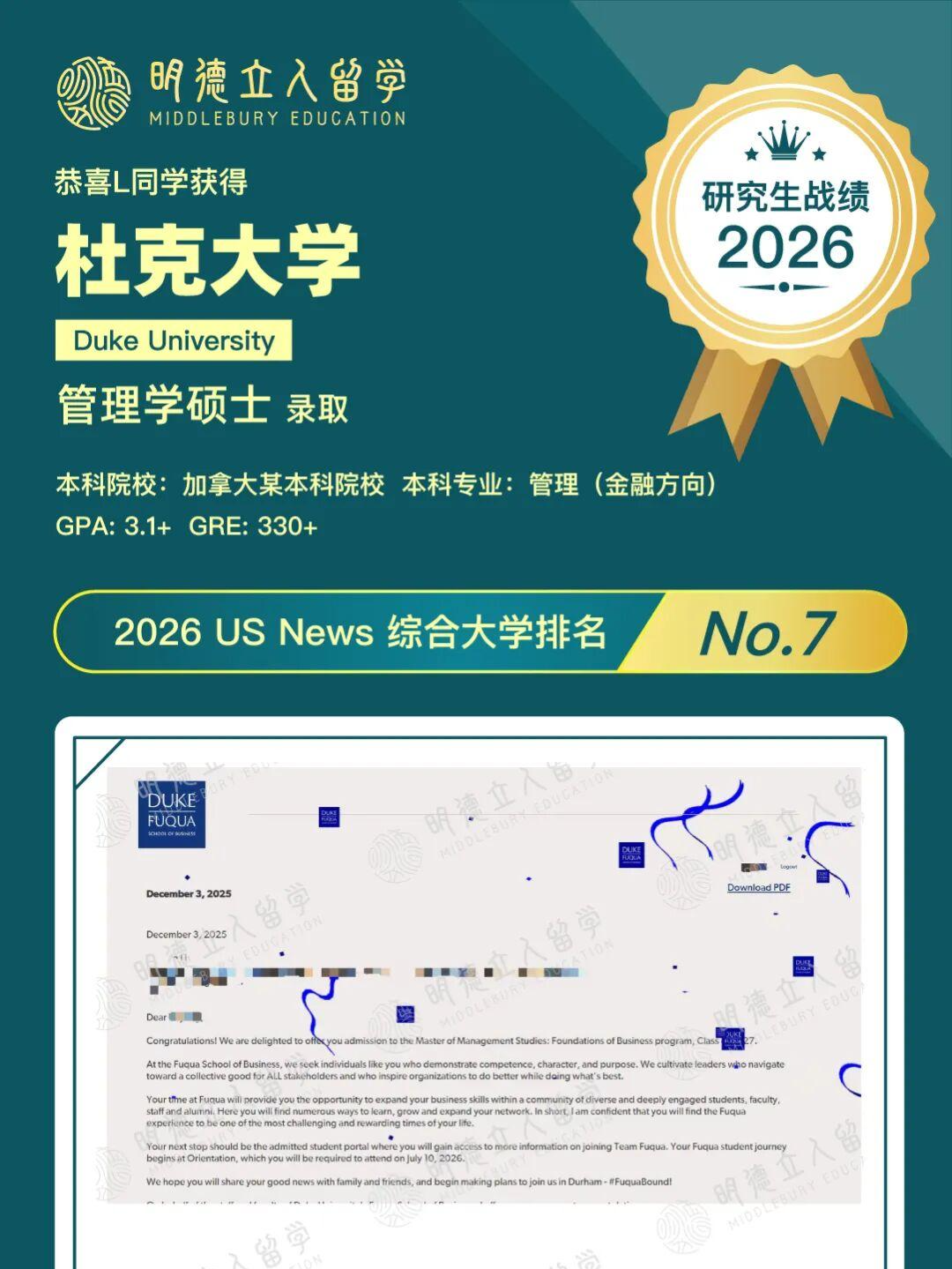 还有杜克大学和纽约大学的offer!恭喜这两位同学一天收获2个录取~