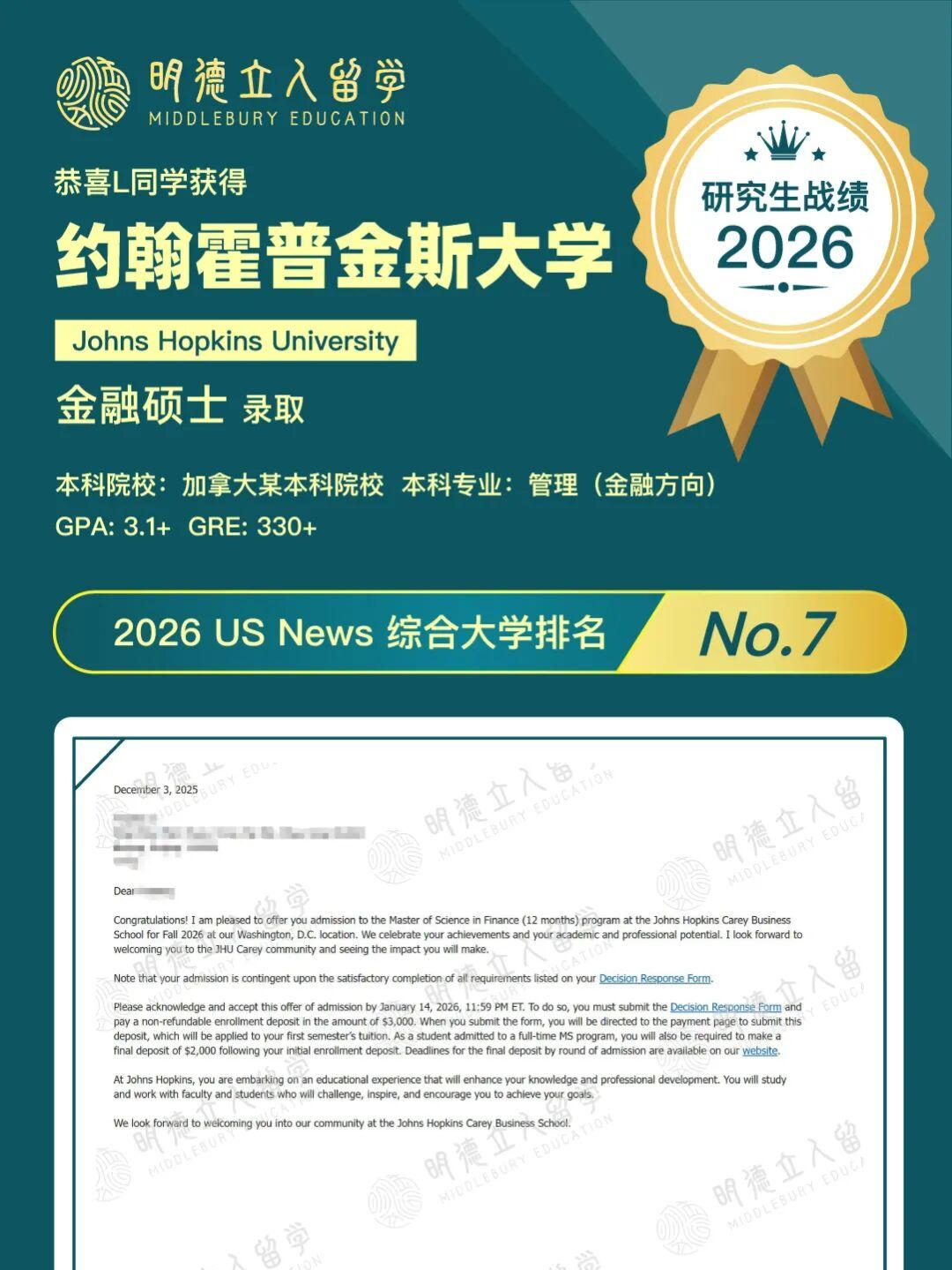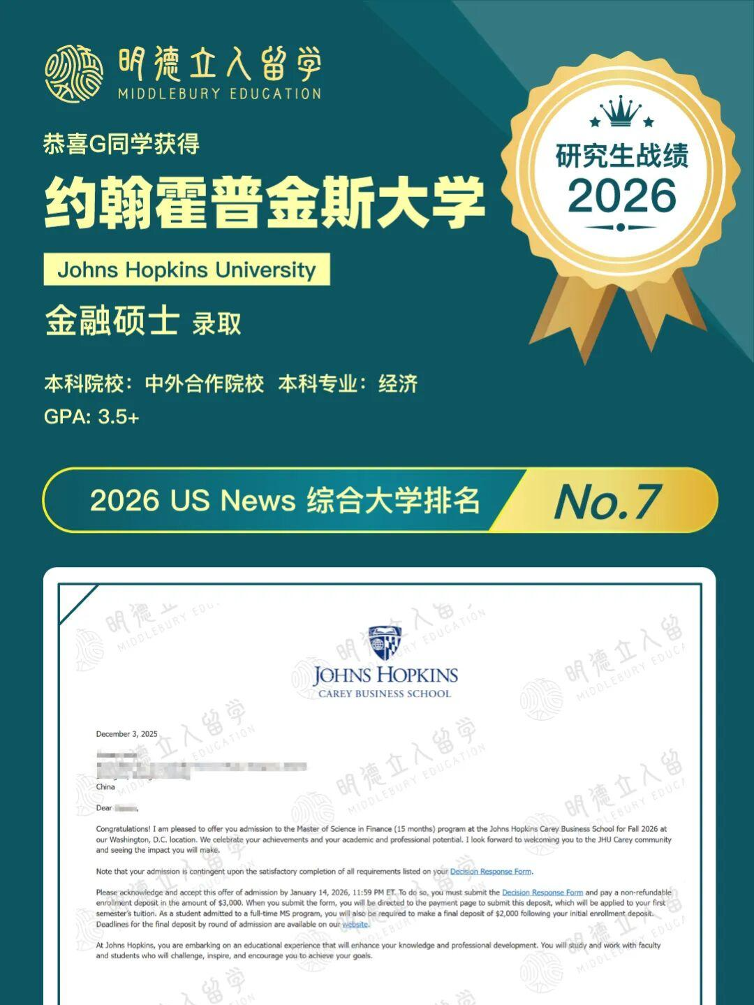 JHU-Carey商学院的商科大热项目共9枚offer,统统收入囊中——