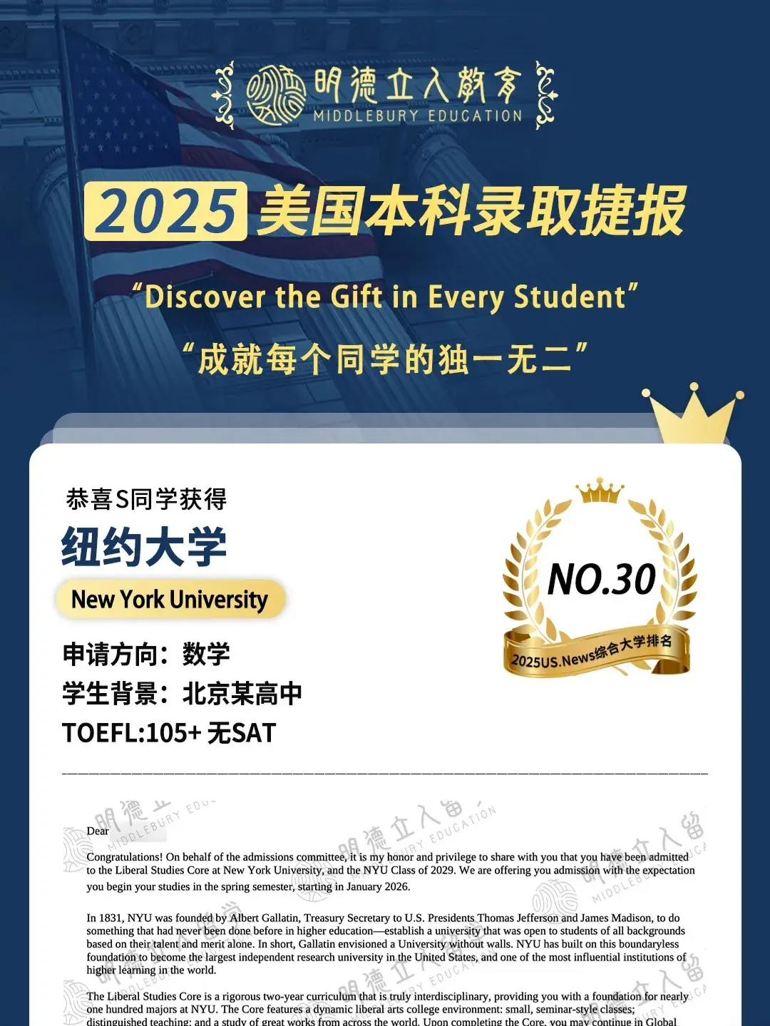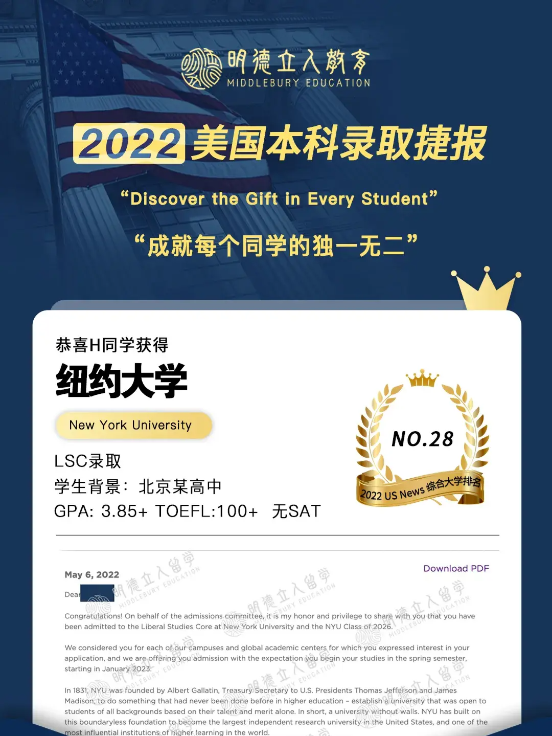 不过,明德深耕美本申请10年+,在助力圆梦上一直相当给力。