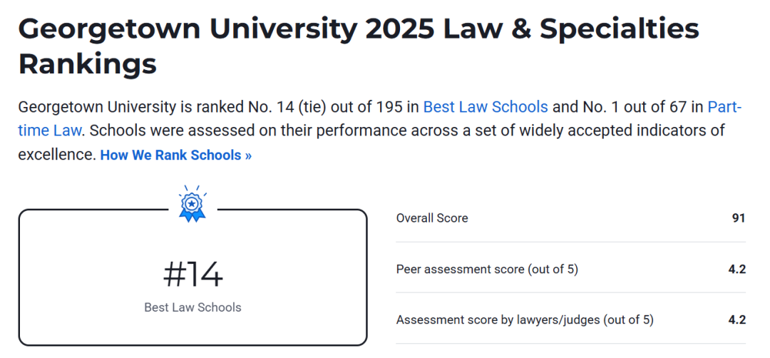 在最新的 US.News 法学院排名中,它位列第 14 !