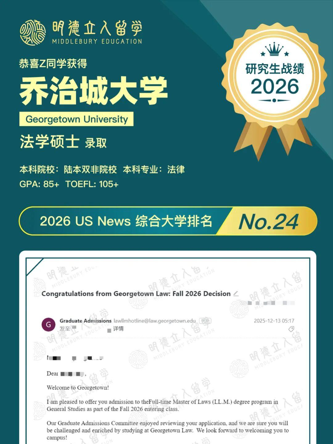 恭喜明德立人学子Z同学!陆本双非法学,冲进——