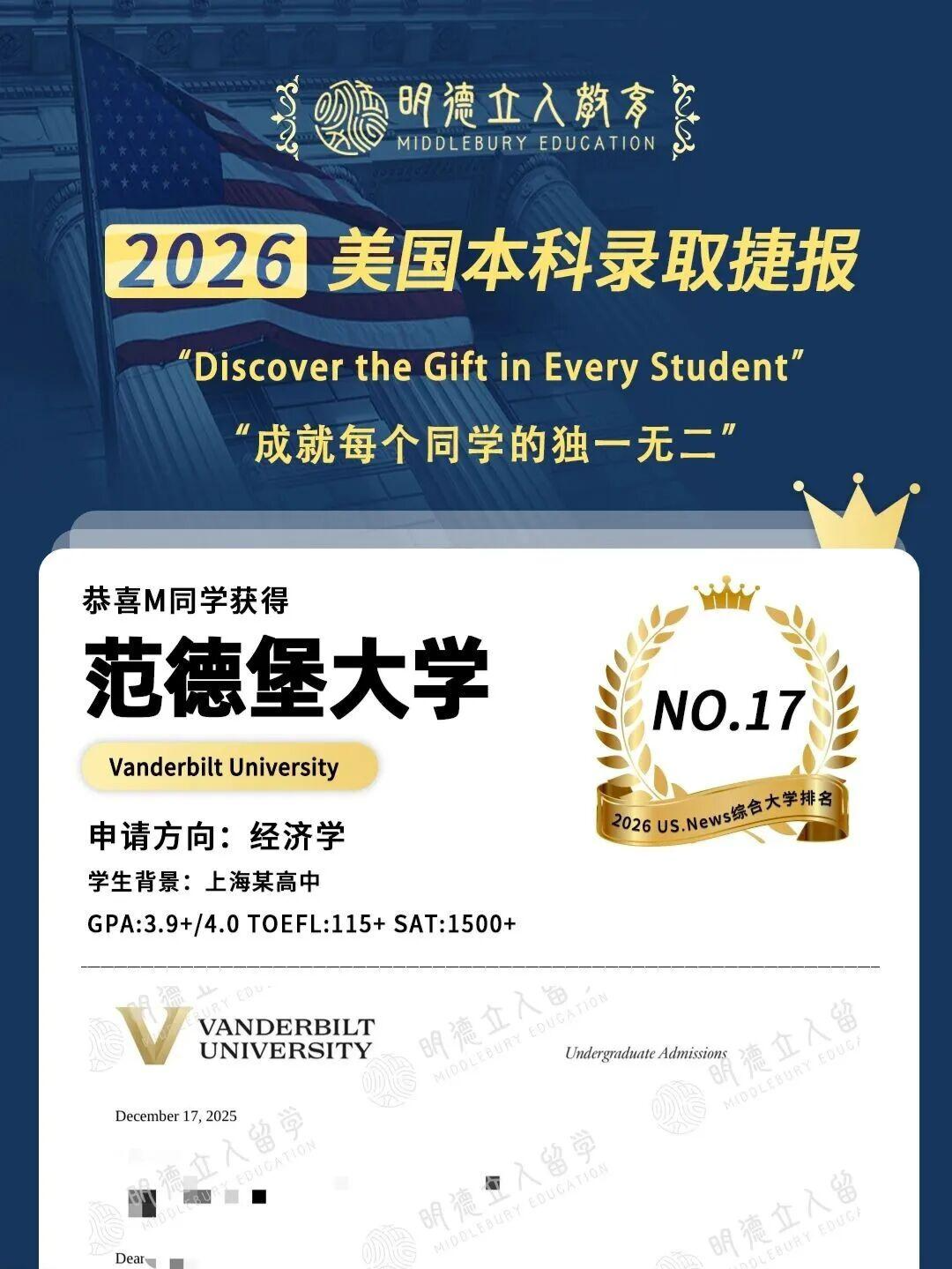 值得一提的是,M同学和25Fall上岸范德堡的明德学员X同学来自上海同一高中,实现了连续两年的同校录取,将在大学继续校友缘了