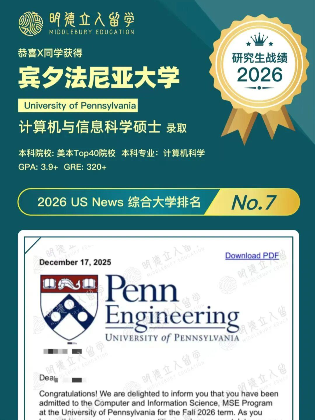 面对 “高绩点 + 背景少 + 时间短” 的挑战,在明德老师的帮助和TA自身努力下,宾大CIS/MSE录取,成了一份最珍贵的圣诞节礼物!
