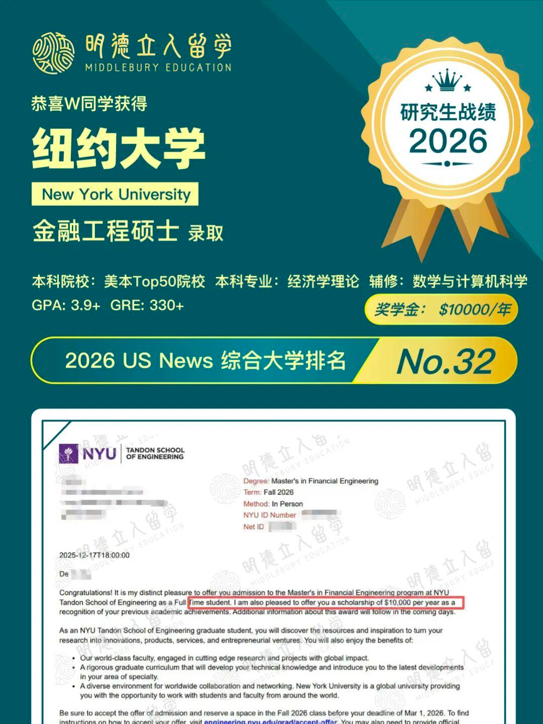 而MFE项目是美国最好的金工项目之一,NYU的金融工程项目在最新的2026 QuantNet排名中位列全美第11名!