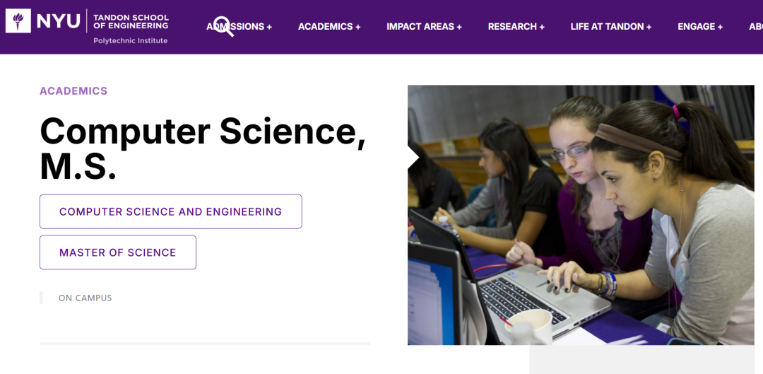 NYU的计算机科学硕士项目开设在NYU Tandon工学院下