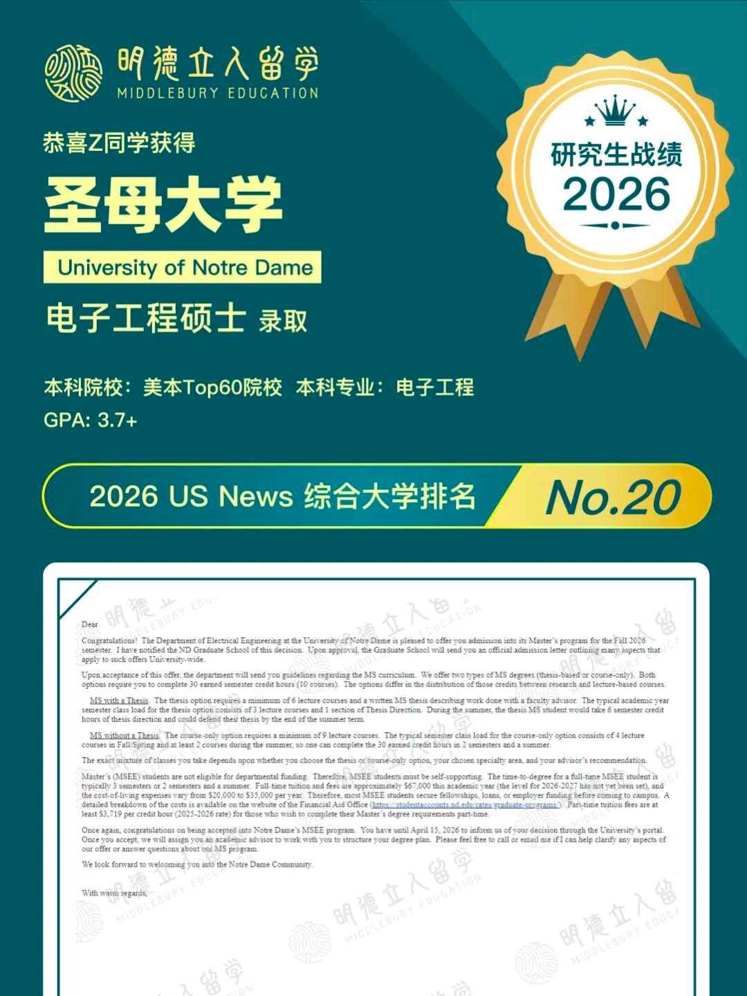 2026 U.S. News全美最佳综合大学排名中,圣母大学位列第20名!