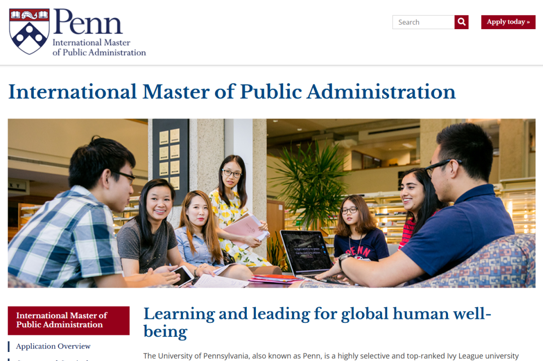 宾夕法尼亚大学国际公共管理硕士(International Master of Public Administration)简称I-MPA,项目隶属于宾大文理与专业研究学院LPS学院。