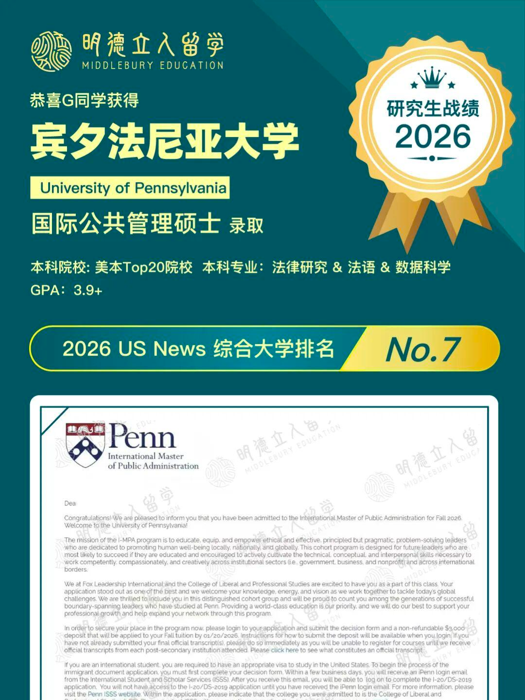 2026 U.S. News全美最佳综合大学排名中,宾大位列第7!