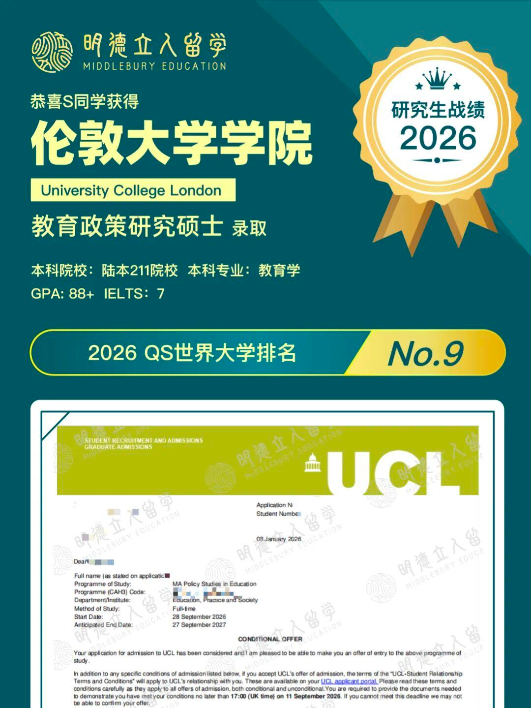 恭喜明德立人学子S同学!从陆本211院校出发,成功斩获——