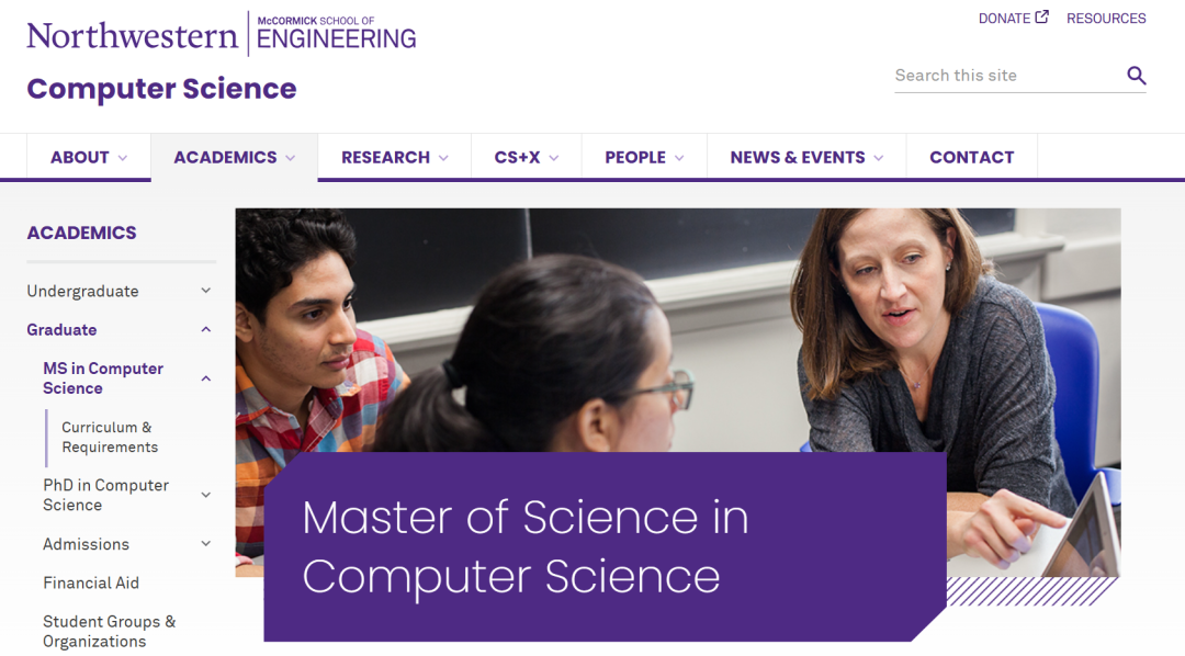 西北大学的计算机科学硕士(Master of Science in Computer Science)项目开设在西北大学著名的麦考密克工程学院之下。