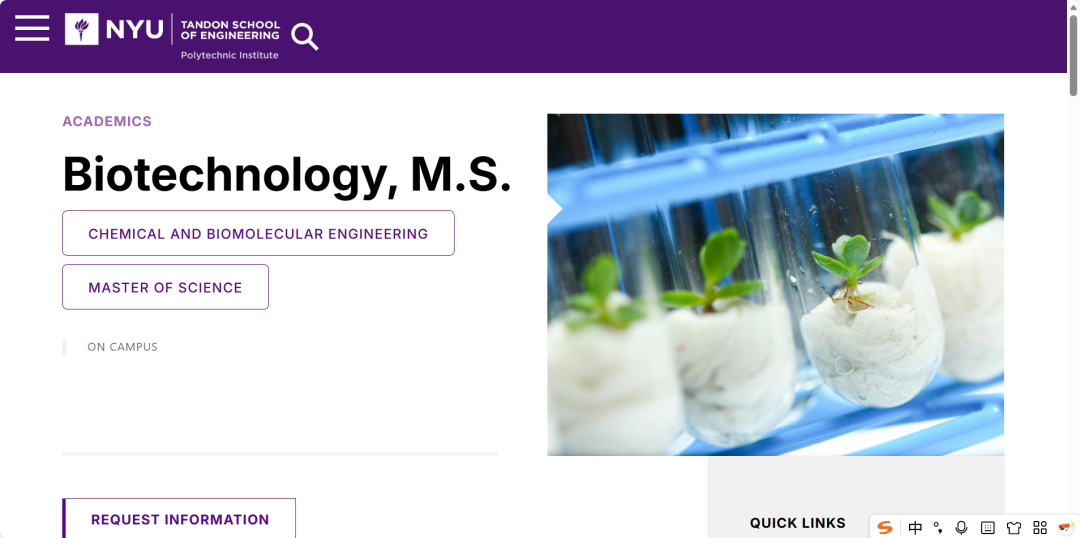 NYU的生物技术硕士项目开设在NYU Tandon工学院下。