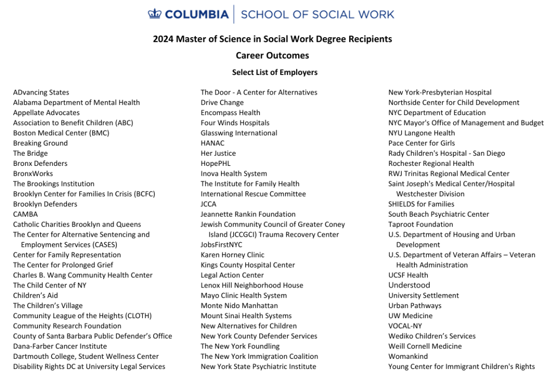 哥大社会工作硕士项目凭借顶尖的教学资源与广泛的行业网络,就业表现持续亮眼。
