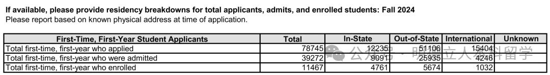 我们再来看普渡大学官方公布的数据,2024Fall中国籍学生申请人数共4,761人,最终录取552人,中国学生的录取率为11.6%。这其中: