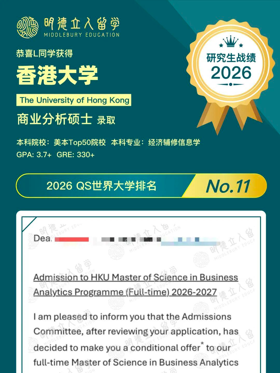 在2026年QS世界大学排名中,香港大学位列世界Top 11,亚洲第二,学术实力十分强劲!