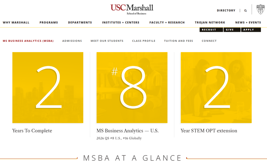 南加州大学商业分析硕士(MS in Business Analytics)开设于 Marshall 商学院,是全美最早开设的BA项目之一。