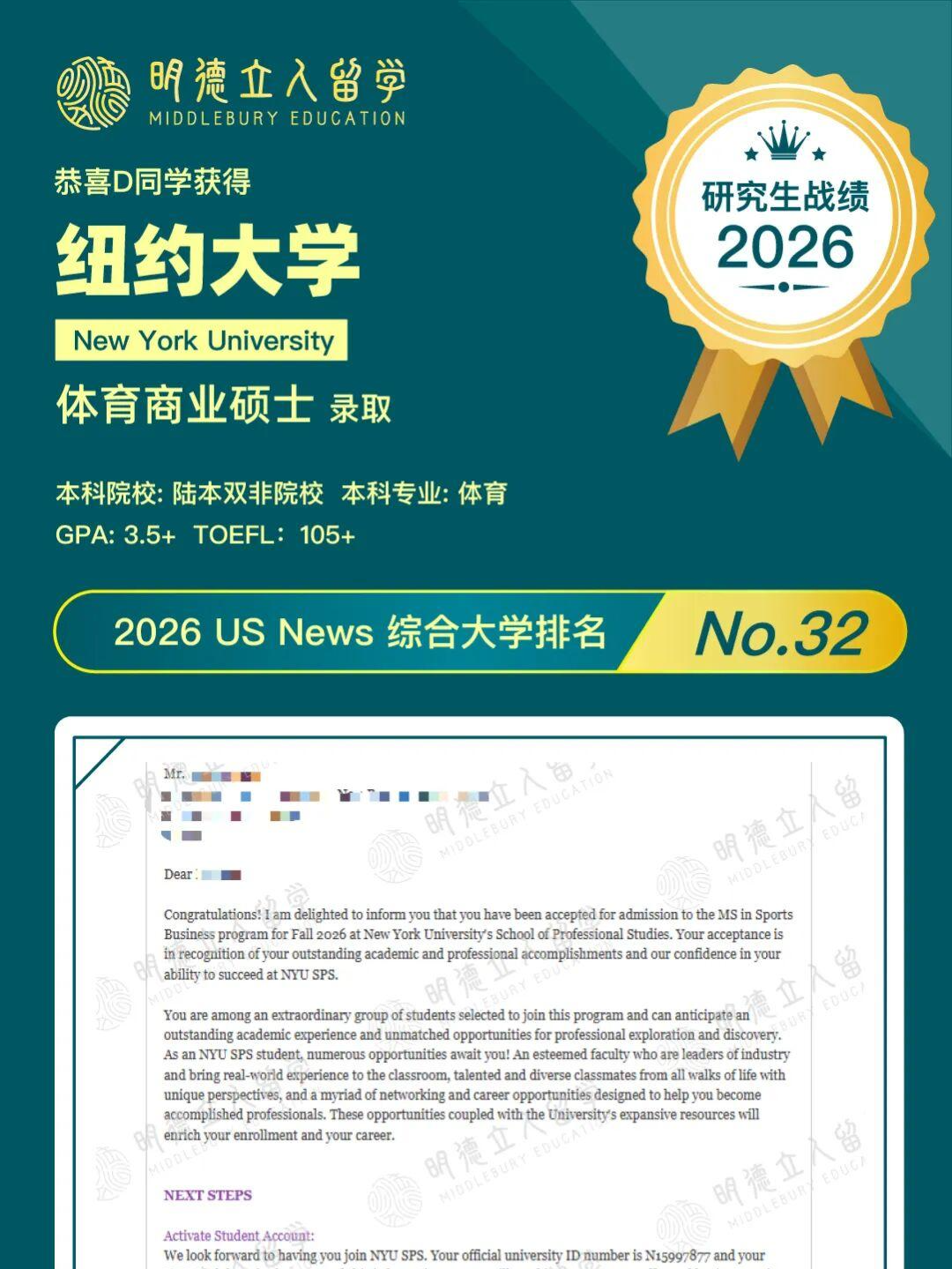 恭喜明德立人学子D同学!从陆本双非出发,成功拿下——