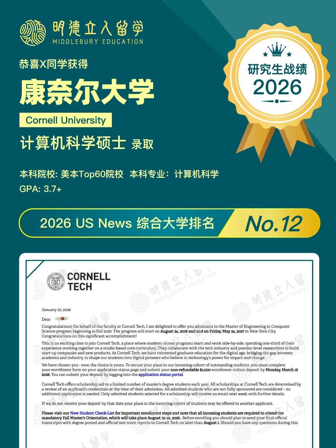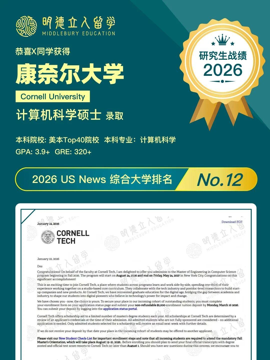 现在,US.News全美计算机科学硕士Top7、全美最近计算机编程语言、理论专业T3的康奈尔已经拿下!